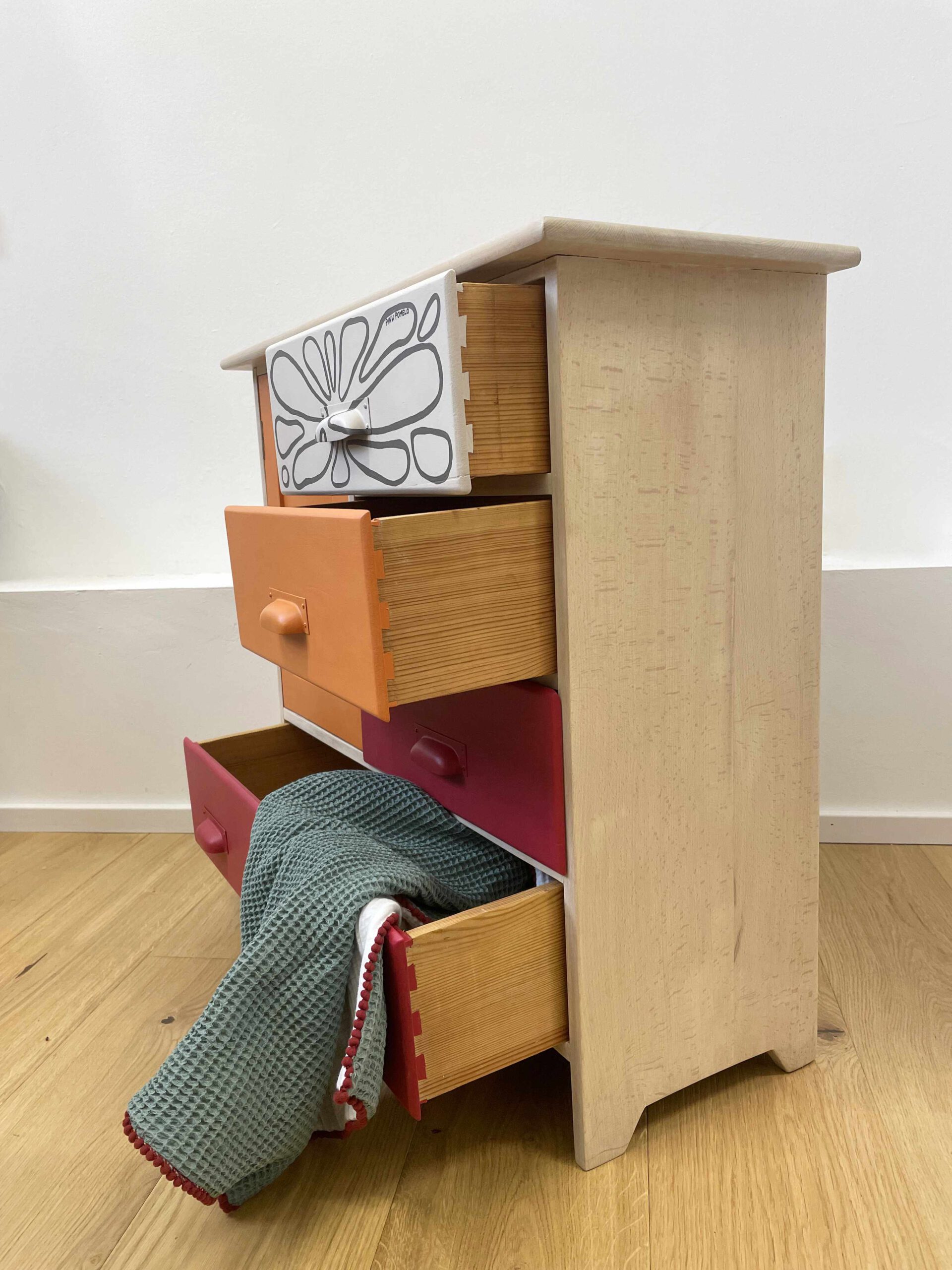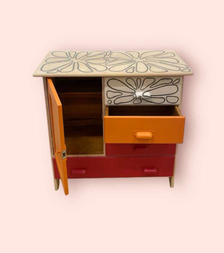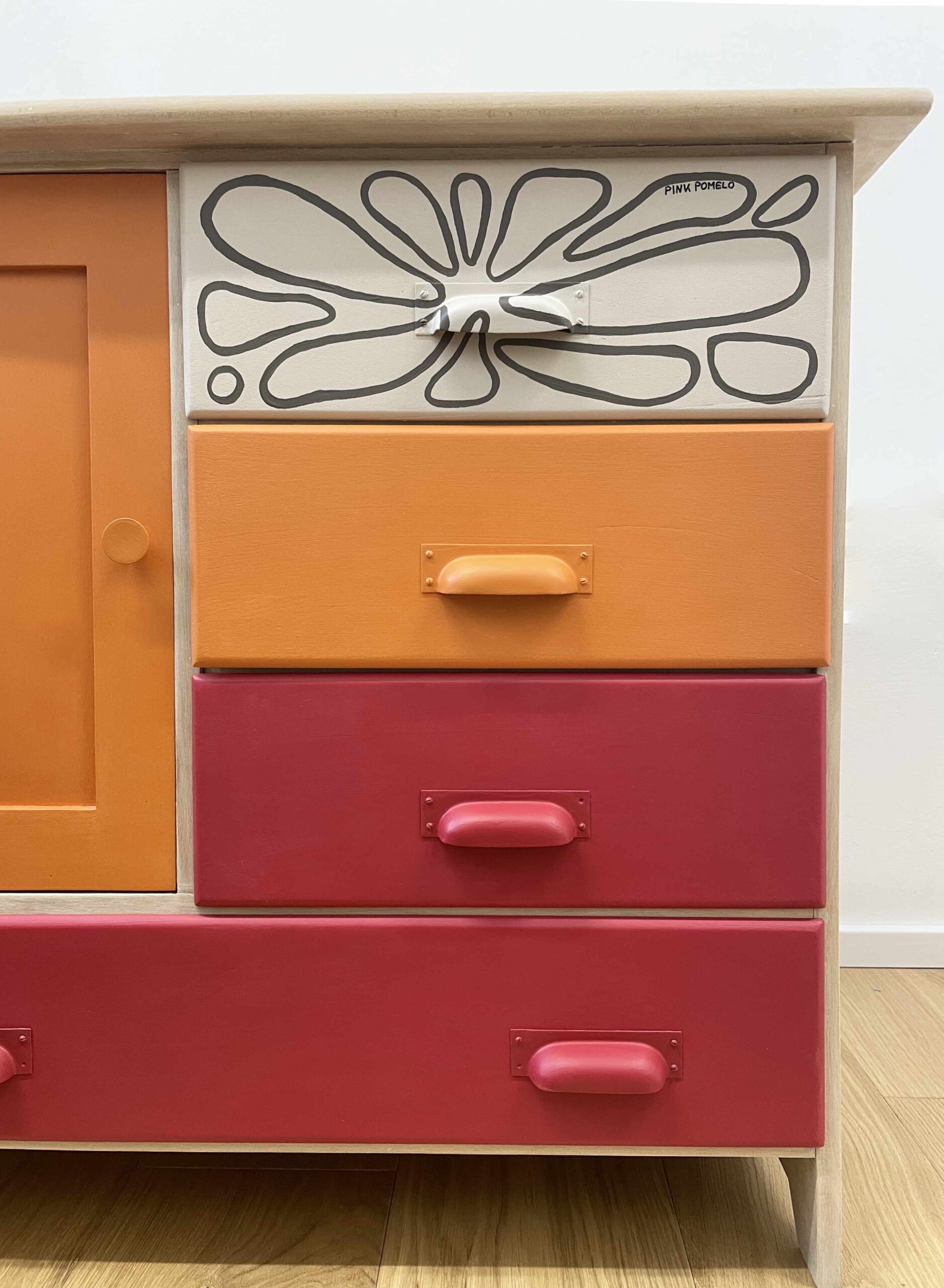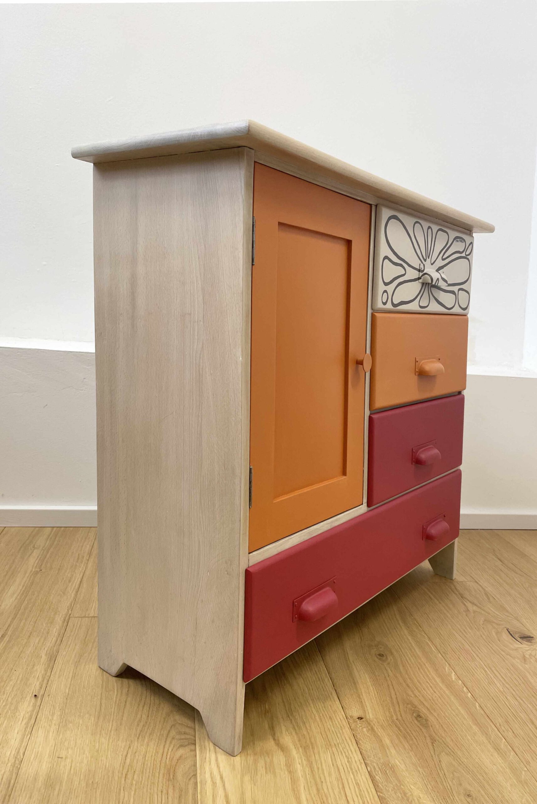 „Pink Pomelo“- das freche kleine Schränkchen mit Vergangenheit. Früher diente es als Schuhputzschränkchen, jetzt ist es bereit für ein neues Abenteuer in deinem Zuhause. Ob als fröhlicher Accessoire-Schränkchen im Flur oder charmantes Kinderzimmermöbel – „Pink Pomelo“ bringt Farbe und Charakter mit!