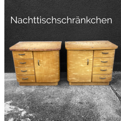 Bei diesen zwei Bettkischdle dienten die Margeriten als Inspiration für die neu Gestaltung. Das Holz wurde abschliffen und in einem Cremeton geölt um die natürliche Maserung hervorzuheben heben. Die grün gestrichenen Schubladen erinnern an das grün der Margeriten. Die Schubladen haben zwei neue, florale Möbelgriffe bekommen, an den Türen wurden die, noch intakten, alten Griffe…